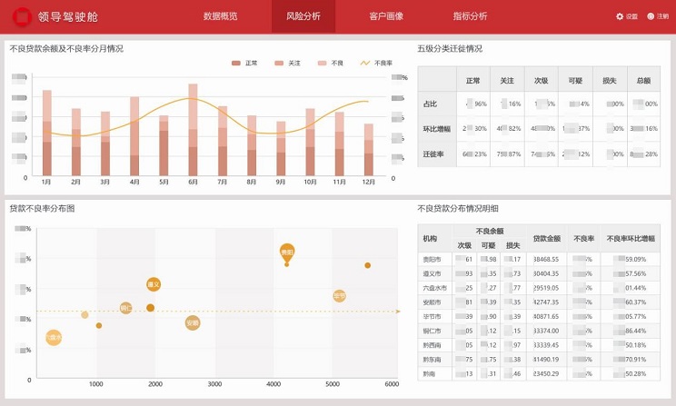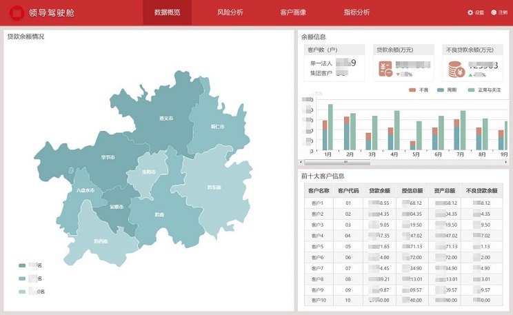 系統(tǒng)覆蓋了客戶風險月報的常用固定報表、分析報表、綜合查詢、等業(yè)務(wù)需求;同時為了滿足各級領(lǐng)導(dǎo)快速直觀地了解掌握全行客戶風險情況的需要,開發(fā)實現(xiàn)了領(lǐng)導(dǎo)駕駛艙功能;為了滿足業(yè)務(wù)人員能夠靈活便捷地對財政收支數(shù)據(jù)進一步分析,開發(fā)實現(xiàn)了自助分析功能。