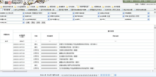 中國進(jìn)出口銀行新一代報(bào)表系統(tǒng)的數(shù)據(jù)來源于各務(wù)系統(tǒng),包括信貸、國結(jié)、資金、會(huì)計(jì)、財(cái)管等,通過分析各業(yè)務(wù)系統(tǒng)之間的關(guān)系,并輔助以數(shù)據(jù)的補(bǔ)錄,通過數(shù)據(jù)倉庫的思想整合出符合"中國進(jìn)出口銀行新一代報(bào)表系統(tǒng)"要求的5大主題群,分別為"總賬"、"信貸"、"國結(jié)"、"資金"、"存款",各主題群之間即可相互獨(dú)立,也可相互關(guān)聯(lián),通過各主題群的應(yīng)用,完成了"1104報(bào)表生成和報(bào)送"、"人行報(bào)表報(bào)送"、"外管局報(bào)表報(bào)送"、"銀監(jiān)會(huì)報(bào)表報(bào)送"、"行內(nèi)各報(bào)表的查詢和報(bào)送"、"客戶風(fēng)險(xiǎn)管理"以及"統(tǒng)計(jì)工作考評"等應(yīng)用模塊。