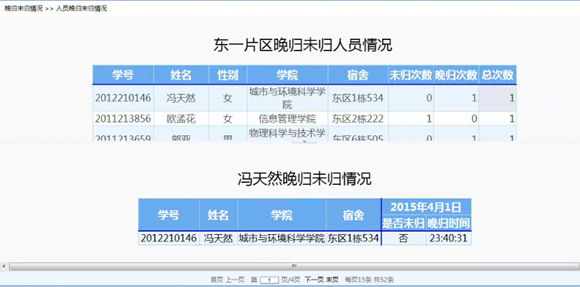 指定兩天內(nèi)沒有門禁刷卡信息和一卡通消費信息以及上網(wǎng)信息的學生為不在校學生,擬出并做預(yù)警。