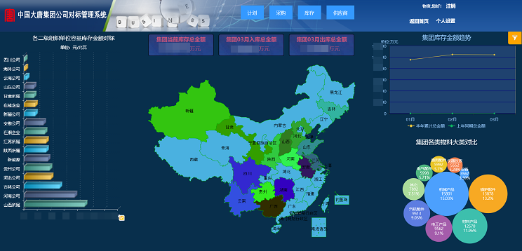 對(duì)標(biāo)管理系統(tǒng)財(cái)務(wù)部分主要進(jìn)行數(shù)據(jù)分析,為中國(guó)大唐集團(tuán)公司以及板塊企業(yè)進(jìn)行多維度分析決策和運(yùn)營(yíng)決策提供及時(shí)有效的信息。對(duì)標(biāo)管理系統(tǒng)物資部分主要實(shí)現(xiàn)電子倉(cāng)庫(kù),實(shí)現(xiàn)物料全集團(tuán)共享查詢、支持備品備件協(xié)作網(wǎng)管理、聯(lián)儲(chǔ)代儲(chǔ)管理;整合各基層企業(yè)采購(gòu)數(shù)據(jù)并且集成大唐電子商城平臺(tái)相關(guān)采購(gòu)數(shù)據(jù),進(jìn)行數(shù)據(jù)分析為采購(gòu)決策提供支持。