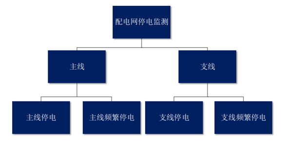 配電網(wǎng)停電監(jiān)測(cè)平臺(tái)包含5大分析主題,分別是平臺(tái)首頁、主線停電、主線頻繁停電、支線停電和支線頻繁停電。