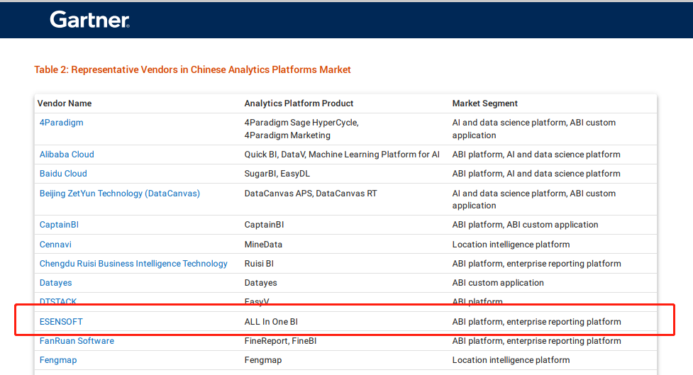 此次發(fā)布的《中國(guó)分析平臺(tái)市場(chǎng)指南》中,Gartner從市場(chǎng)趨勢(shì)、競(jìng)爭(zhēng)格局、產(chǎn)品方向等多個(gè)維度對(duì)中國(guó)的數(shù)據(jù)分析市場(chǎng)做了分析和預(yù)測(cè)。