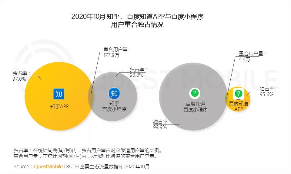 假如我們只有對(duì)比,我們只知道我們的菜比如更好了或者變差了, 但是沒(méi)有細(xì)分, 細(xì)分就是尋找差異, 從色香味, 從調(diào)料、選材、火候、加工順序等等多個(gè)方面去找尋差異。 01 互聯(lián)網(wǎng)中的細(xì)分 在互聯(lián)網(wǎng)的數(shù)據(jù)分析中, 經(jīng)常我們?nèi)シ治霰热缃裉斓幕钴S人數(shù)降低了, 我們經(jīng)常要從多個(gè)維度去分析為什么降低。 同時(shí)我們還要跟上周, 昨天, 去年同期等做對(duì)比, 分析雖然是降低了, 但對(duì)比去年是否有變化。 那么我們?nèi)绾巫鲆粋€(gè)有效的細(xì)分呢。 首先我們有很多可以細(xì)分的維度, 比如從時(shí)間上拆分, 一個(gè)月的活躍人數(shù)我們可以拆分到每一天的人數(shù), 活躍人數(shù)可以拆分新的活躍人數(shù), 老的活躍人數(shù)。 同樣都是活躍人數(shù), 我們可以拆分不同活躍等級(jí)的人數(shù), 這里的活躍人數(shù)指的就是比如一個(gè)月活躍1天、活躍3天、活躍7天等不同活躍天數(shù), 又可以拆分成一天活躍1小時(shí), 3小時(shí), 7小時(shí)等不同時(shí)長(zhǎng)的用戶。 我們還可以對(duì)地區(qū)進(jìn)行細(xì)分, 比如活躍人數(shù)降低了, 我們可以細(xì)分到是哪個(gè)地方降低比較多, 是廣東還是廣西, 是湖南還是湖北。 除了以上拆分的維度, 我們還可以有很多拆分的維度, 比如另外一個(gè)例子, 我們發(fā)送的表情總數(shù)量跌了, 我們就可以拆分成發(fā)送的小黃臉小表情, 還有很騷氣的大表情。 這些拆分是跟特地業(yè)務(wù)相關(guān)的。 對(duì)于電商類的業(yè)務(wù)比如總的訂單量,我們可以拆分來(lái)自不同的店鋪, 不同的品類, 不同的商品類型, 不同的價(jià)格類型等等。 對(duì)于游戲類型的業(yè)務(wù)比如總的賣的游戲皮膚,我們可以拆分不同角色的皮膚, 武器也是類似的。 對(duì)于視頻類app,比如抖音的關(guān)注數(shù), 我們可以拆分不同用大v的粉絲數(shù)量。 單單細(xì)分, 沒(méi)有對(duì)比, 就沒(méi)有洞察, 那么我們細(xì)分好了分析維度之后, 怎么對(duì)比呢。 02 互聯(lián)網(wǎng)中的對(duì)比 對(duì)比就是在細(xì)分的基礎(chǔ)上選擇合適的指標(biāo)進(jìn)行對(duì)比。比如我們要分析現(xiàn)在朋友圈在某一天的情況如何。 我們會(huì)想一些指標(biāo)去評(píng)估, 比如朋友圈活躍人數(shù), 活躍次數(shù), 活躍時(shí)長(zhǎng), 活躍到發(fā)表的轉(zhuǎn)化率等, 然后我們就會(huì)把這些指標(biāo)去跟去年同期做對(duì)比看漲跌如何, 也就是自己跟自己比。 除了自己跟自己比, 我們會(huì)拿到一個(gè)具體的漲跌的數(shù)字, 但我們不知道一個(gè)數(shù)字是有沒(méi)有明顯的異常, 這時(shí)候就可以借助其他的業(yè)務(wù)。 比如我們會(huì)看表情活躍今年跟去年同期對(duì)比的漲跌, 然后看朋友圈的漲跌跟表情的漲跌, 就可以科學(xué)評(píng)估這個(gè)漲跌是否是非常異常的。 03 數(shù)據(jù)報(bào)告中的細(xì)分和對(duì)比 在數(shù)據(jù)分析報(bào)告中, 貫穿整個(gè)數(shù)據(jù)報(bào)告的其中一周思維就是細(xì)分和對(duì)比, 我們?cè)诿枋鲆粋€(gè)業(yè)務(wù), 一個(gè)產(chǎn)品, 一個(gè)功能的時(shí)候, 我們就會(huì)拆分多個(gè)維度去對(duì)比分析。 比如以questmobile報(bào)告為例, 我們可以發(fā)現(xiàn), 首先是細(xì)分從社交, 視頻, 網(wǎng)購(gòu)等多個(gè)維度進(jìn)行細(xì)分, 然后對(duì)比他們的活躍占比。 但除了對(duì)比這些興趣度以外, 本身興趣度自己跟自己又有同比的增量情況, 這個(gè)主要是刻畫如果一個(gè)興趣度的占比比其他興趣更活躍的時(shí)候, 這個(gè)興趣度本身的活躍占比、相比上周、相比去年同期是否有變化。 另外一種細(xì)分我們可以看到在算知乎app和知乎百度小程序的占有率的時(shí), 細(xì)分了知乎app自己獨(dú)占率, 知乎小程序的獨(dú)占率, 就可以對(duì)比app 和小程序的獨(dú)占率的差異, 知乎app(97.0%)> 知乎小程序 (93.3%),同時(shí)還可以對(duì)比知乎app 中 單純app獨(dú)占率(97.0%) 和 小程序 3% 的占比之差。 除了同一個(gè)app獨(dú)占率自己的對(duì)比, 同種類型的app的獨(dú)占率還做了對(duì)比. 比如百度知道app 獨(dú)占率 95.6%, 宣布內(nèi)附知乎app 獨(dú)占率(97.0%)略低。但百度小程序的獨(dú)占率(99.0%)要大大高于 知乎小程序的獨(dú)占率 93.3%。  04 細(xì)分和對(duì)比方法的總結(jié) 細(xì)分和對(duì)比方法在數(shù)據(jù)分析中的應(yīng)用非常之多,  同樣的在面試的時(shí)候也經(jīng)常會(huì)問(wèn)到一些問(wèn)題的分析, 也會(huì)經(jīng)常要用到細(xì)分和對(duì)比的分析方法。 同樣在生活中, 我們的購(gòu)物貨比三家, 旅游的時(shí)候攻略也是多家對(duì)比, 我們時(shí)時(shí)刻刻都在面對(duì)需要細(xì)分和對(duì)比的方法去解決問(wèn)題的時(shí)候。